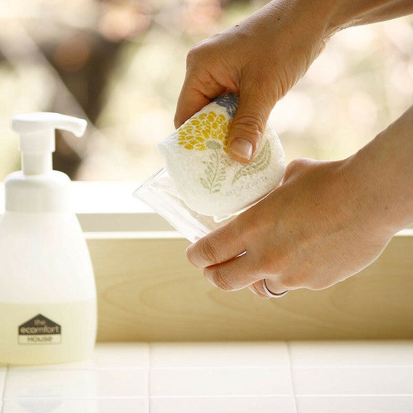 這款海綿平時如卡片般薄片,遇水後立即膨脹成柔軟厚海綿,由 100% 天然植物纖維(纖維素) 製成,環保可分解,清洗玻璃、漆器等精緻餐具時也不易刮傷。